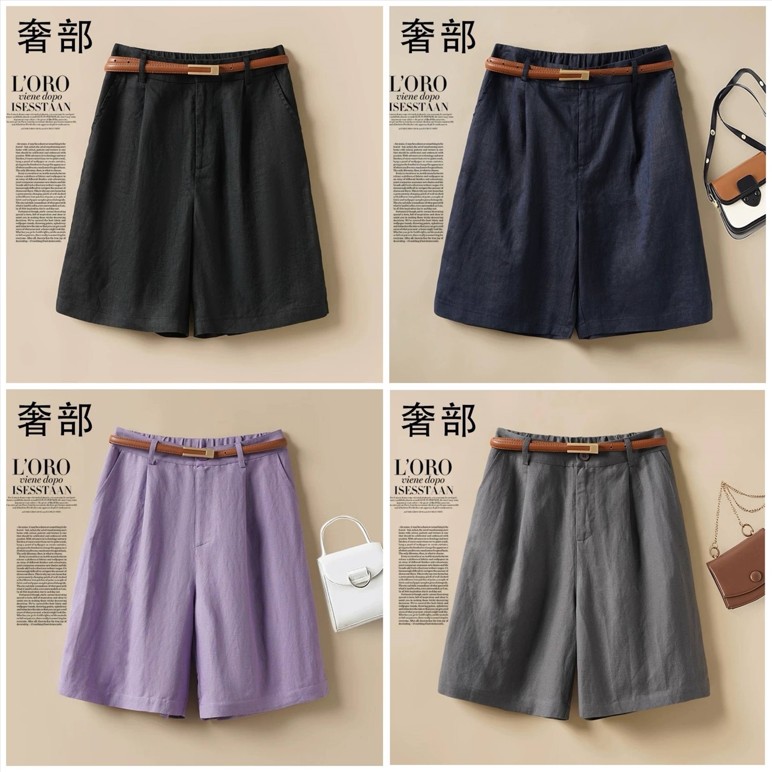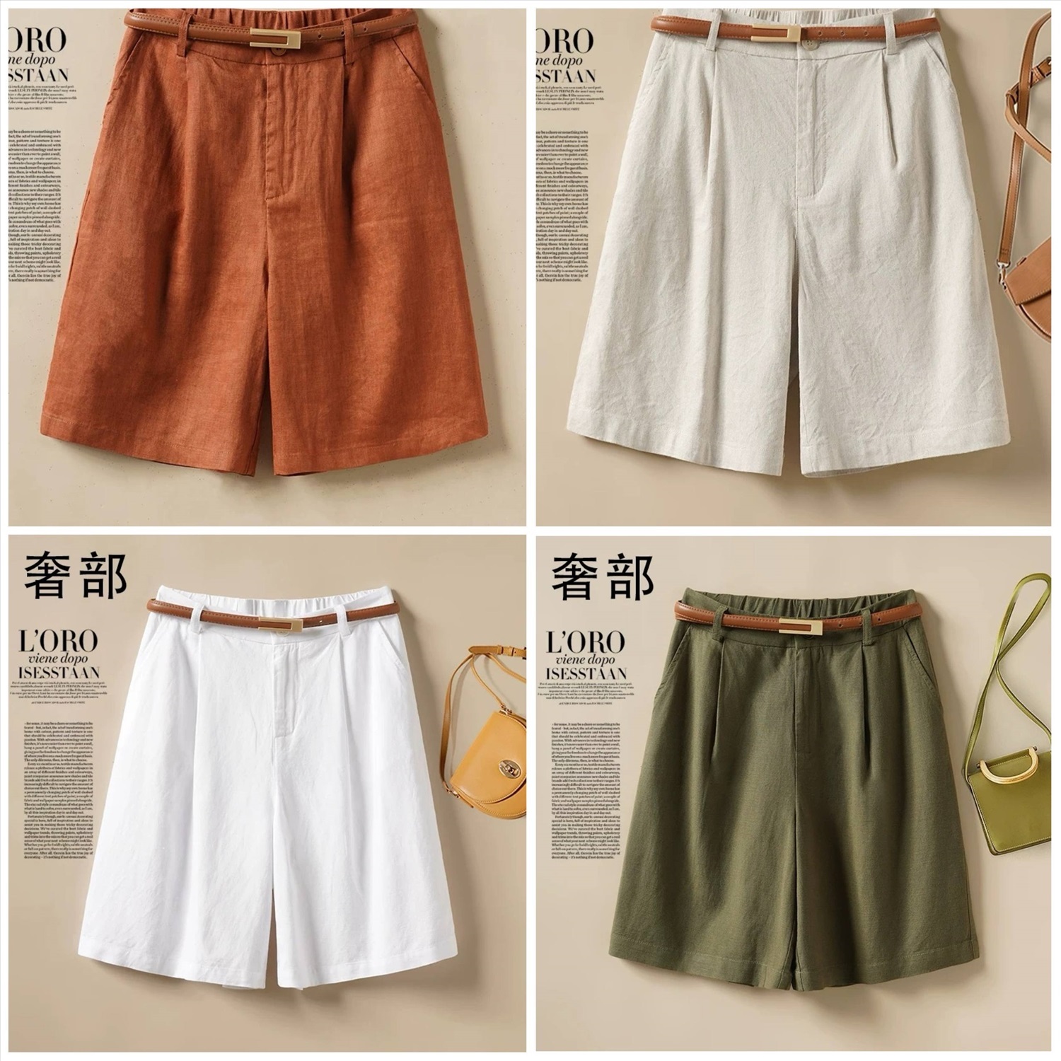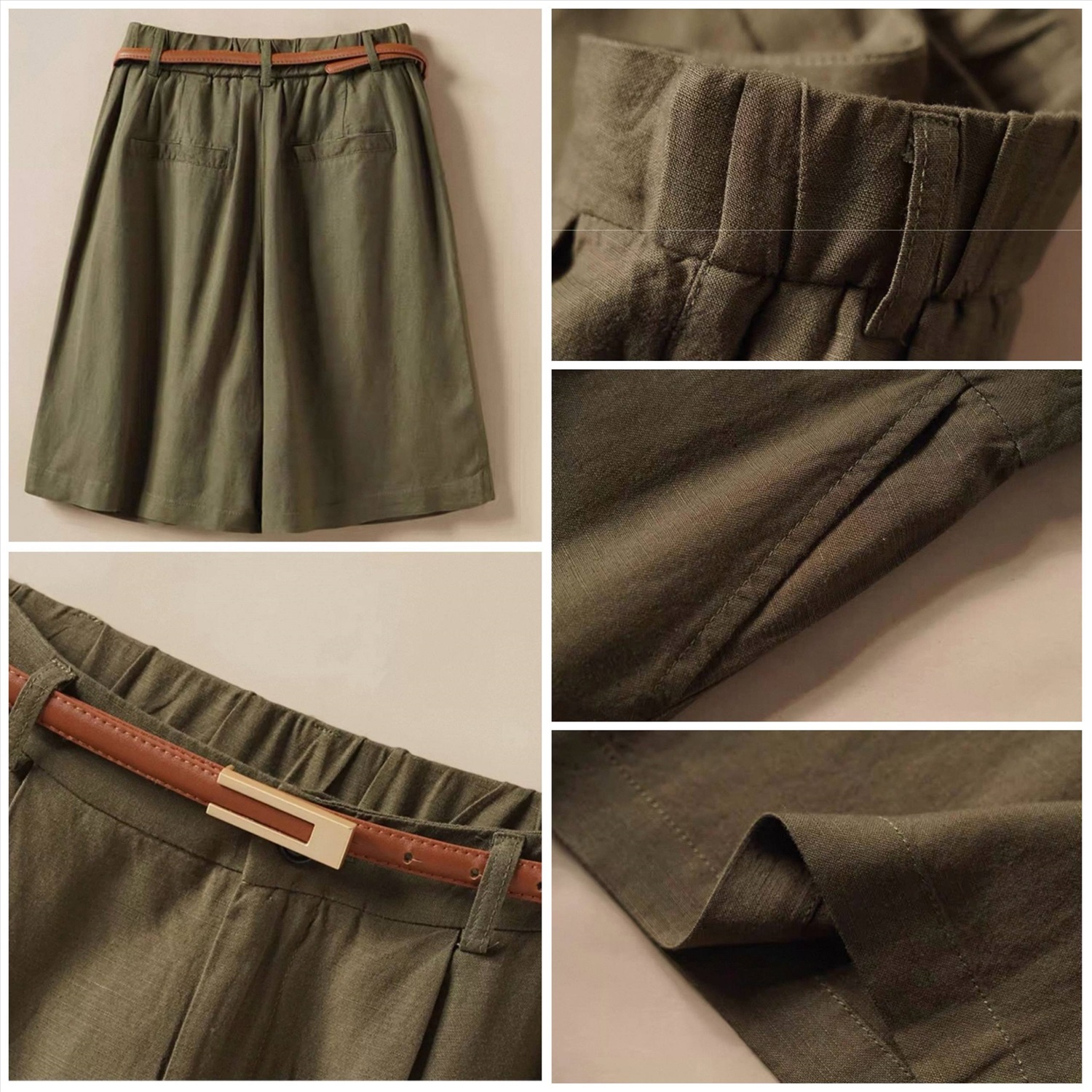 Женские удлиненные льняные шорты с ремнем в комплекте (8цветов)