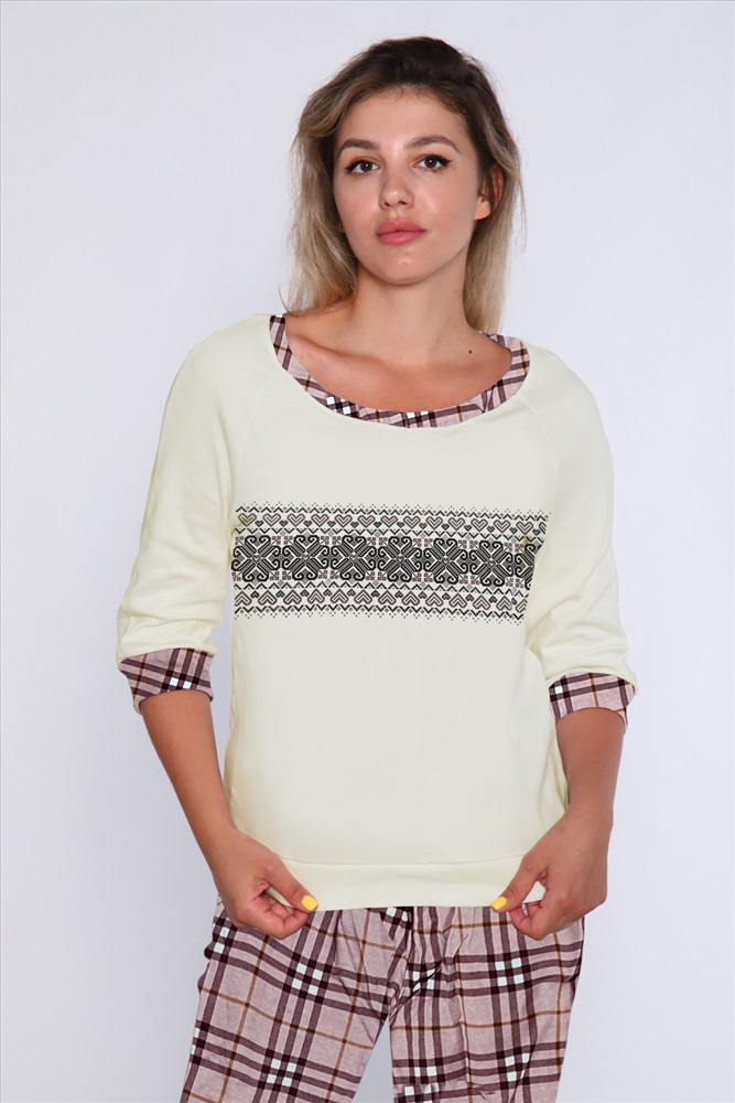 Состав: 92% хлопок; 8% лайкра Модель: Женский домашний костюм с брюками 66 Тип товара: костюм с брюками Материал: кулирка с лайкрой | кулирка с лайкрой Бренд: NINEL Карман: боковые Назначение: для дома НДС: Без НДС Особенности: на резинке Отделка: с карманами | с манжетами | с печатью Посадка: средняя посадка Рисунок: клетка | узоры Рукав: рукав 3/4 Сезонность: лето | осень | весна | зима Силуэт: полуприлегающий | свободный Стиль: домашний Воротник: без воротника Застежка: без застежки Женский костюм с брюками и кофтой с рукавом 3/4 элегантность и комфорт в каждой детали! Удобные брюки и стильная кофта создают гармоничный образ, который подойдёт для дома, в дороге или прогулок. Качественные материалы и лаконичный дизайн подчеркнут вашу женственность и обеспечат уверенность в каждом движении. Идеальный выбор для современной женщины! Таблица размеров и весакофта