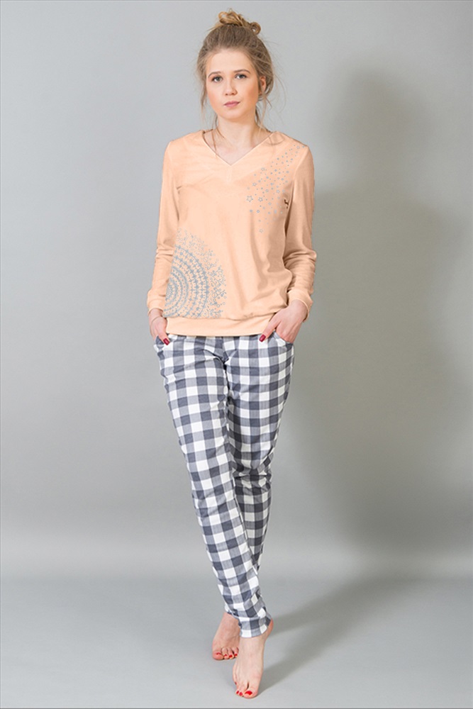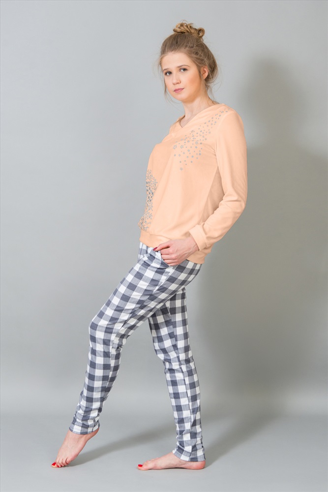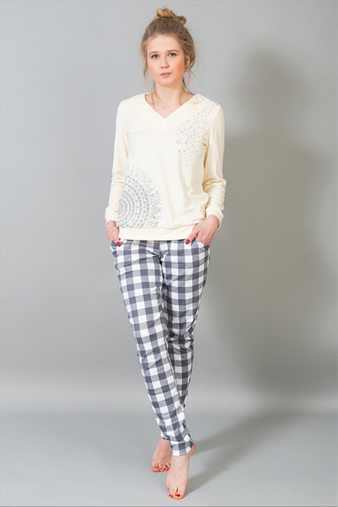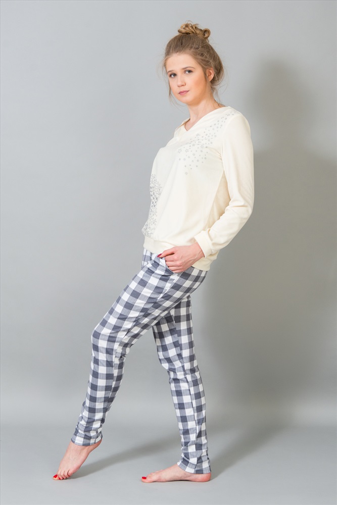 Состав: 60%хлопок 40%полиэстер Модель: Женский домашний костюм с брюками и кофтой 184 Тип товара: костюм с брюками Материал: кулирка | кулирка Бренд: NINEL Карман: боковые Назначение: для дома НДС: Без НДС Особенности: на резинке Отделка: с карманами | с манжетами | с печатью Посадка: средняя посадка Рисунок: клетка | узоры Рукав: длинный рукав Сезонность: лето | осень | весна | зима Силуэт: свободный Стиль: домашний Воротник: без воротника Застежка: без застежки Костюм с брюками и кофтой. Удобные брюки и стильная кофта полуприлегающего кроя создают гармоничный образ, который подойдёт для дома, в дороге или прогулок. Качественные материалы и лаконичный дизайн подчеркнут вашу женственность и обеспечат уверенность в каждом движении. Идеальный выбор для современной женщины! Таблица размеров и весакофта