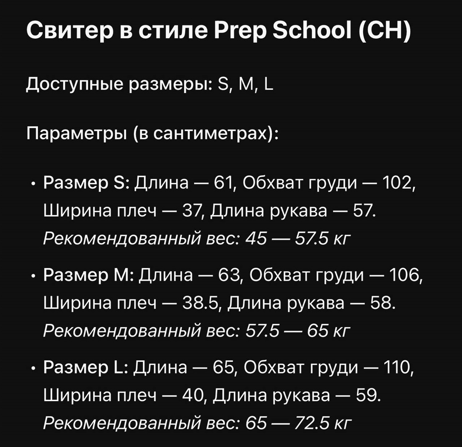 Размер: S, M, L