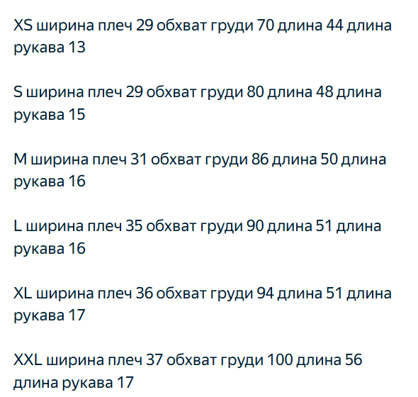 Размер: XS, S, M, L, XL, 2XL