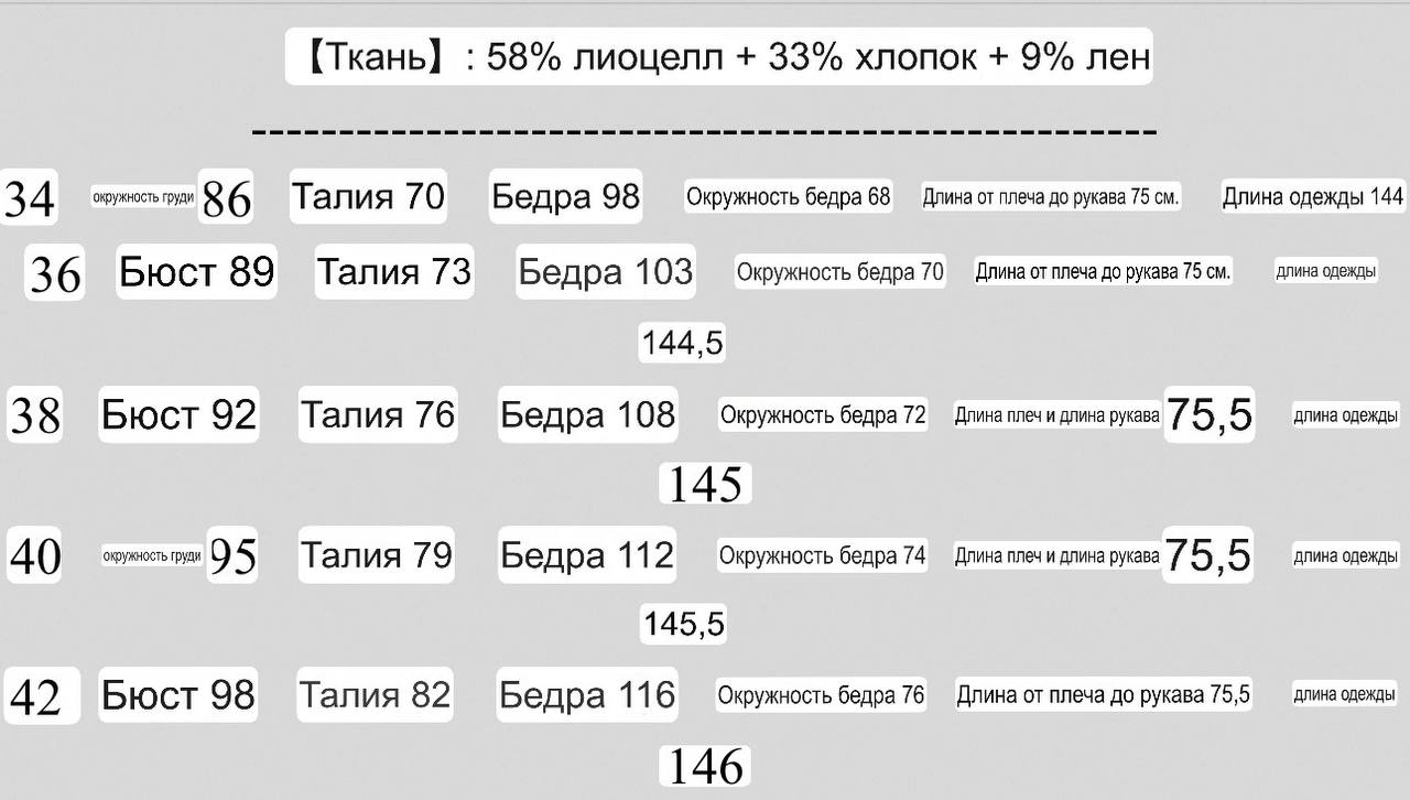 Материал: 58% лиоцелл 33% хлопок 9% лен Размеры: 36 38 40 42 Комментарии к товару