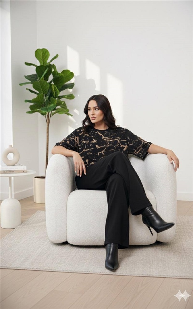 Состав: 95%вискоза 5%эластан Модель: Женский костюм с брюками и футболкой 411 Тип товара: костюм с брюками Материал: вискоза | вискоза Бренд: NINEL Карман: без карманов Назначение: для дома НДС: Без НДС Посадка: средняя посадка Рисунок: абстракция Рукав: короткий рукав Сезонность: лето | осень | весна | зима Силуэт: прямой | свободный Стиль: домашний | нарядный | повседневный Воротник: без воротника Застежка: без застежки Представляем вам женский повседневный костюм от бренда NINEL воплощение элегантности и непревзойденного комфорта. Этот комплект, состоящий из свободных брюк и футболки, создан для современной девушки, ценящей качество, стиль и универсальность. Ощутите роскошь премиальной вискозы: Костюм выполнен из высококачественной вискозы, которая дарит коже ощущение нежности и шелковистости. Этот материал обладает превосходной воздухопроницаемостью, позволяя телу дышать даже в самые жаркие дни, а также приятной прохладой и мягкостью. Вискоза не электризуется, не скатывается и сохраняет свой первозданный вид надолго, что делает этот костюм идеальным выбором для ежедневной носки. Свободный крой для абсолютной свободы движений: Дизайн костюма продуман до мелочей, чтобы обеспечить максимальный комфорт и свободу движений. Свободный крой брюк и футболки создает расслабленный, но при этом стильный силуэт, который подходит абсолютно всем. Вы будете чувствовать себя уверенно и непринужденно в любой ситуации, будь то прогулка по городу, встреча с друзьями или домашний отдых. Универсальность для любого роста: Мы позаботились о том, чтобы этот костюм стал идеальным дополнением к гардеробу каждой девушки, независимо от ее роста. Свободный крой и продуманные пропорции позволяют костюму прекрасно смотреться как на миниатюрных девушках, так и на высоких красавицах. Брюки легко адаптируются под разную длину ног, а футболка создает гармоничный образ, подчеркивая достоинства фигуры. Стиль, который говорит сам за себя: Костюм NINEL это не просто одежда, это заявление о вашем безупречном вкусе. Минималистичный дизайн, высокое качество материалов и идеальная посадка делают его универсальным решением для создания множества образов. Сочетайте футболку с другими элементами вашего гардероба или носите костюм как единое целое вы всегда будете выглядеть стильно и элегантно. Преимущества костюма NINEL: Премиальная вискоза: Невероятная мягкость, воздухопроницаемость и долговечность. Свободный крой: Максимальный комфорт и свобода движений. Универсальность: Идеально подходит для девушек любого роста. Стильный дизайн: Элегантность и актуальность на каждый день. Легкость в уходе: Сохраняет свой первозданный вид после многочисленных стирок. Таблица размеров и весаБрюки
