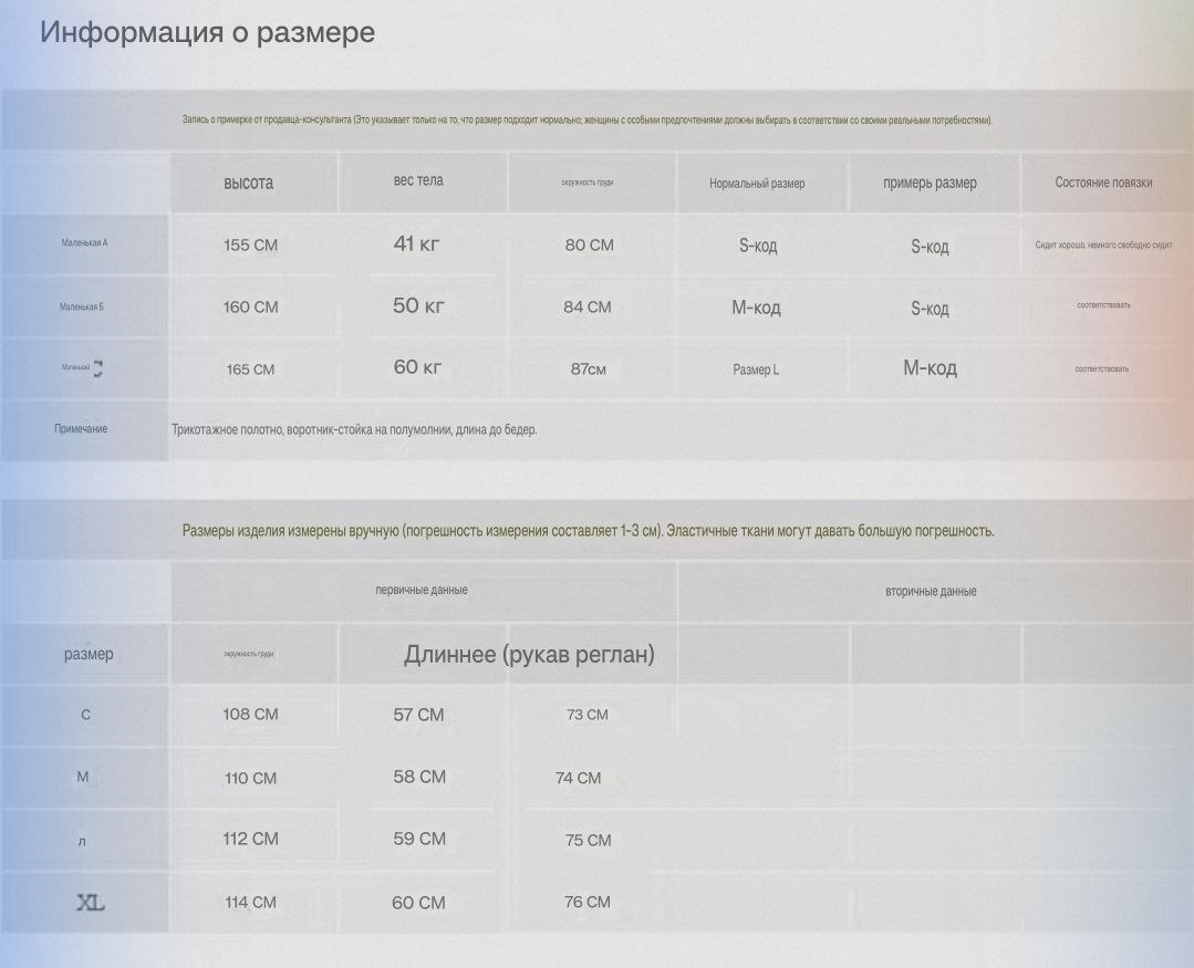 Размеры: S M L XL