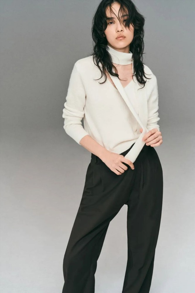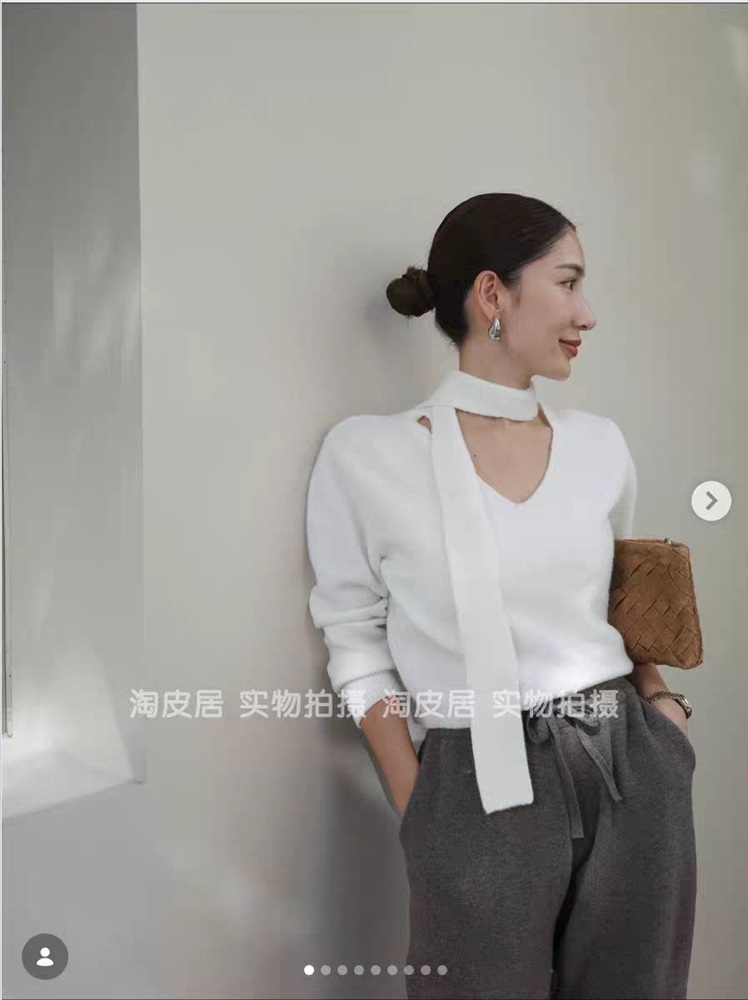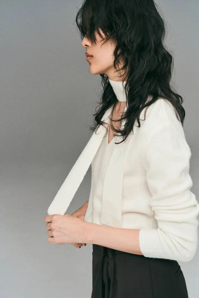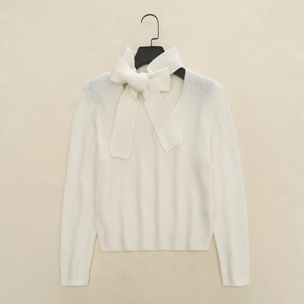 Женский пуловер с V-образным вырезом и воротник-шарфом Н*М