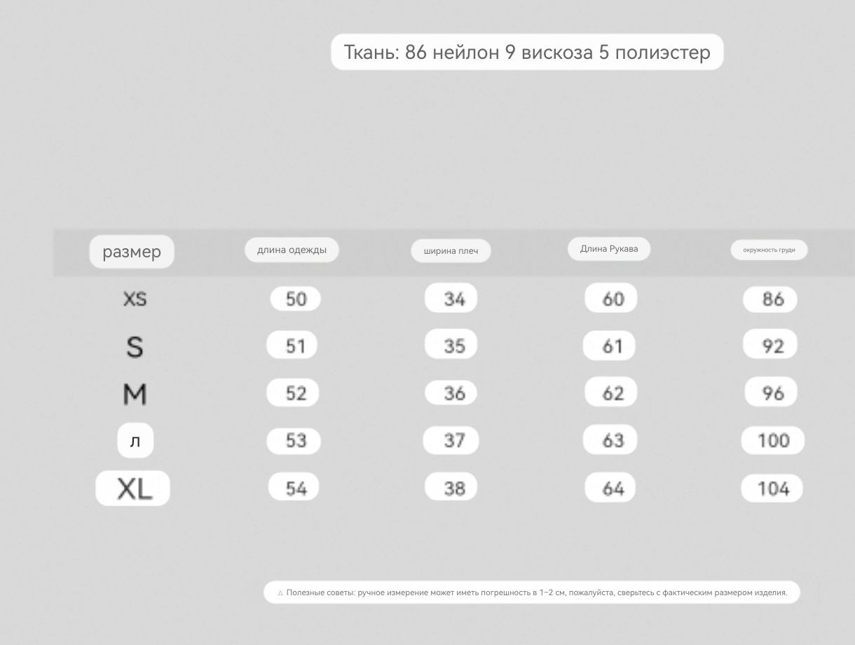 Материал: нейлон 86%, вискоза9%, полиэстер 5% Размеры: XS S M L XL Комментарии к товару