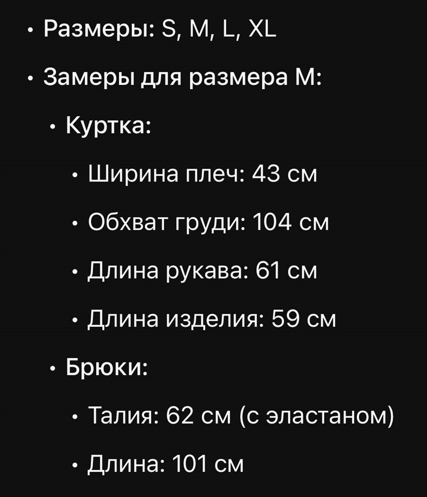Размеры: S M L XL (замеры даны только для размера M)