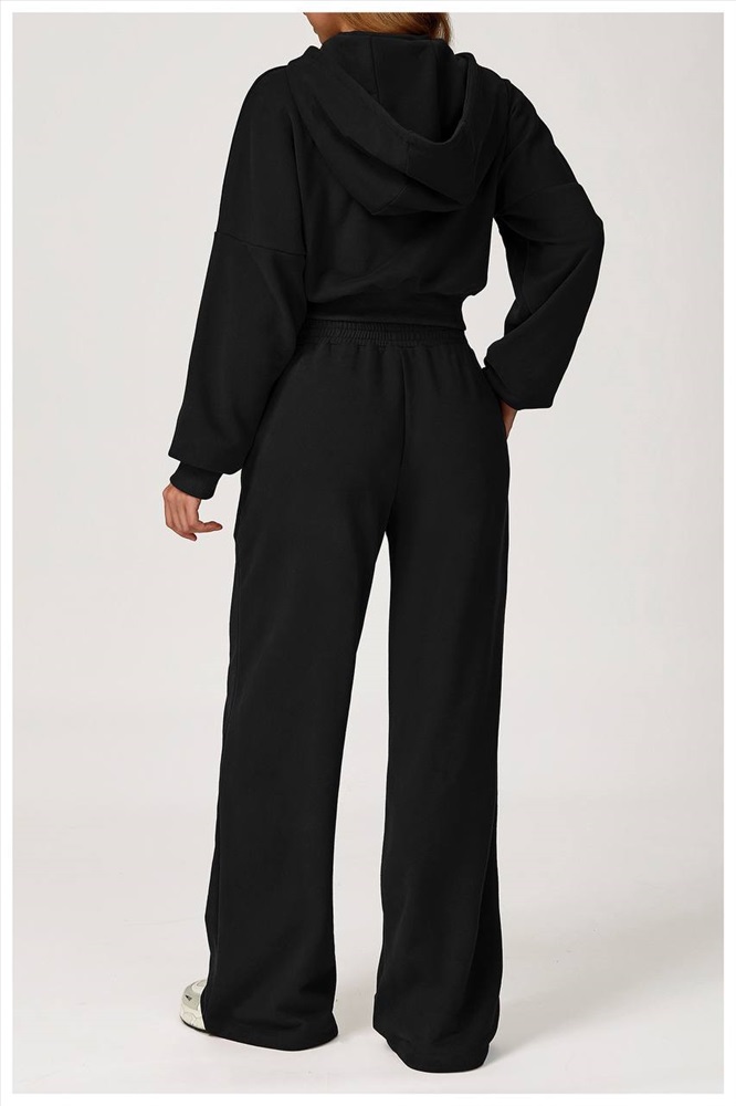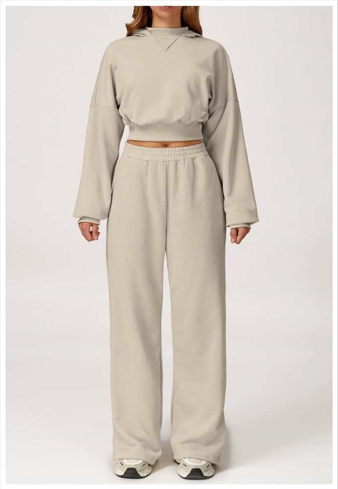 Укороченное худи с небольшим воротником стойкой и капюшоном + трендовые свободные штаны