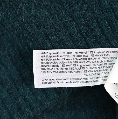 Материал: 48% нейлон, 18% шерсть, 17% мохер, 15% акрил, 2% спандекс