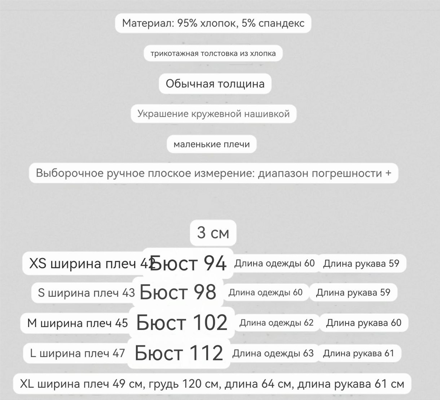 Материал: хлопок 95%, спандекс 5% Комментарии к товару