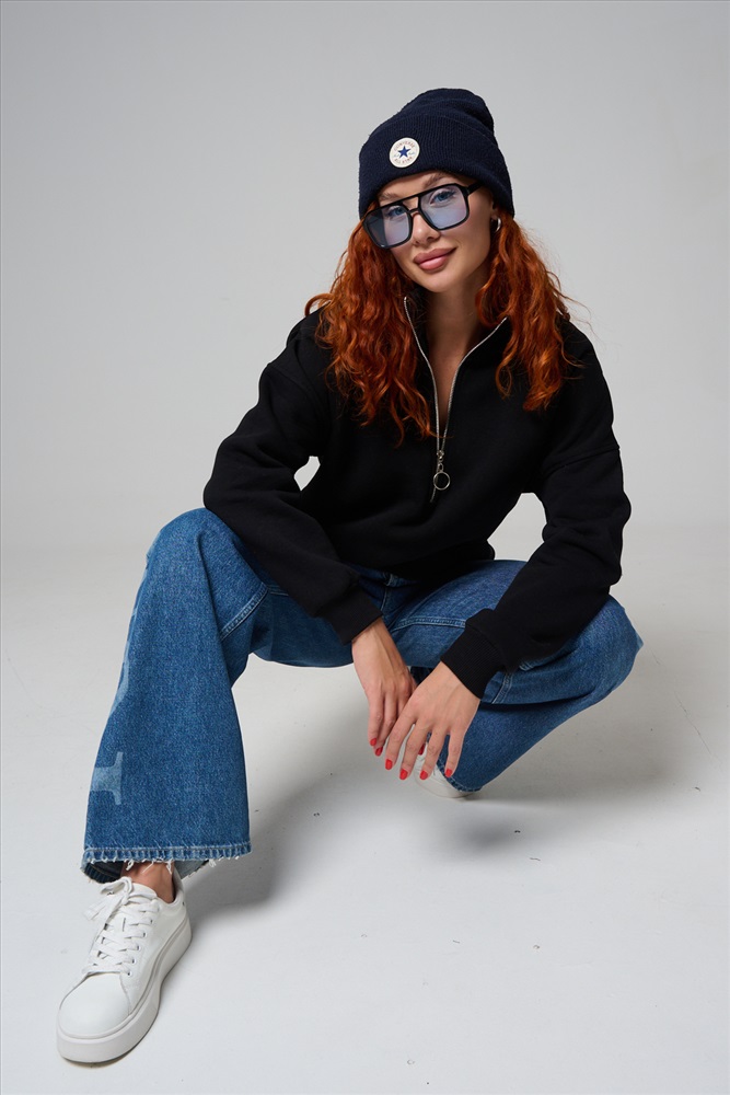 Женский свитшот на молнии оверсайз начес 14427