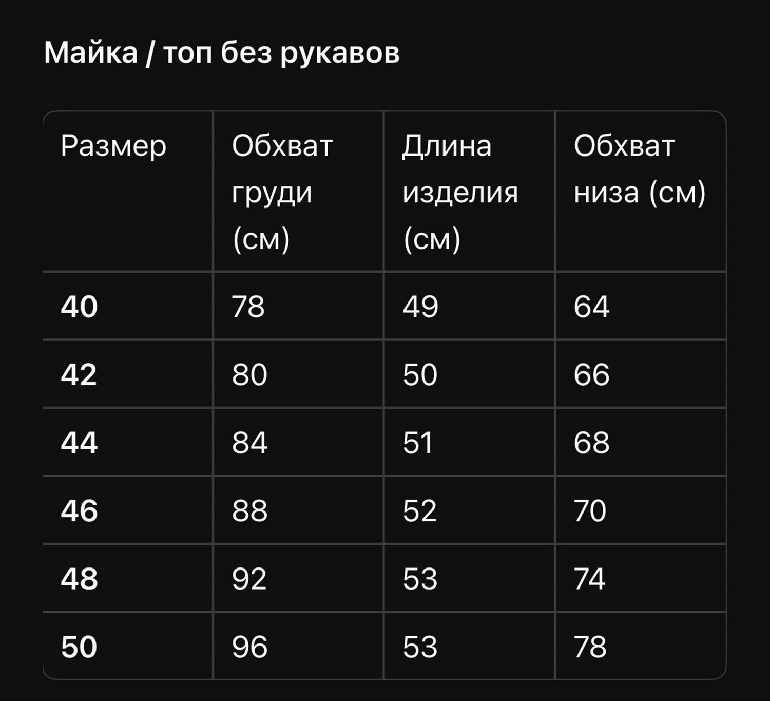 Размер: 40, 42, 44, 46, 48, 50