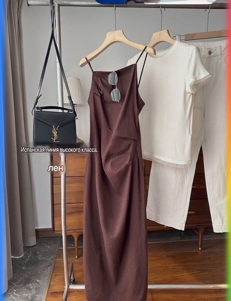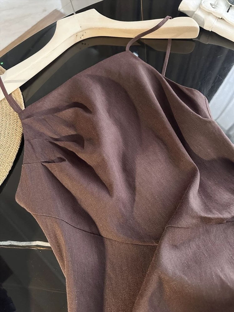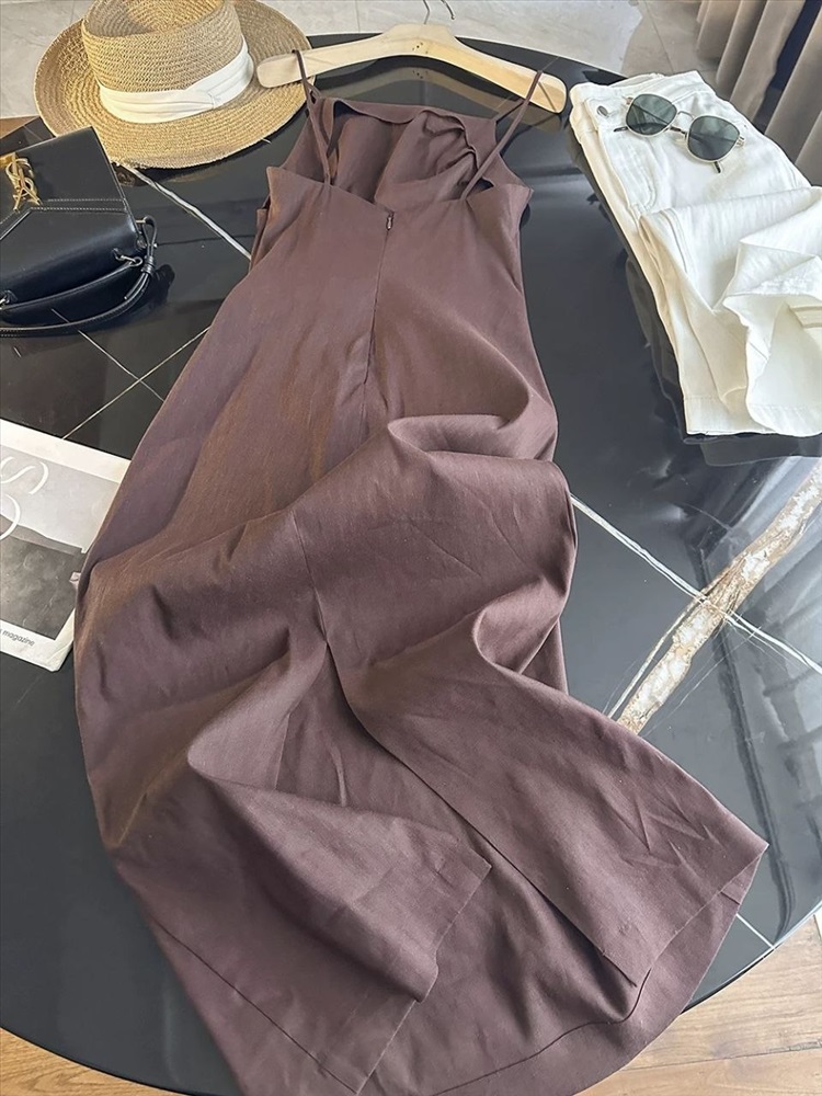 Женское льняное платье комбинация на тонких бретелях МАССИМО Д