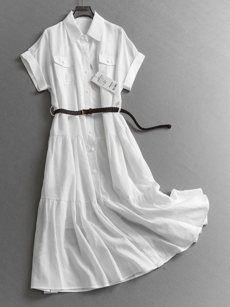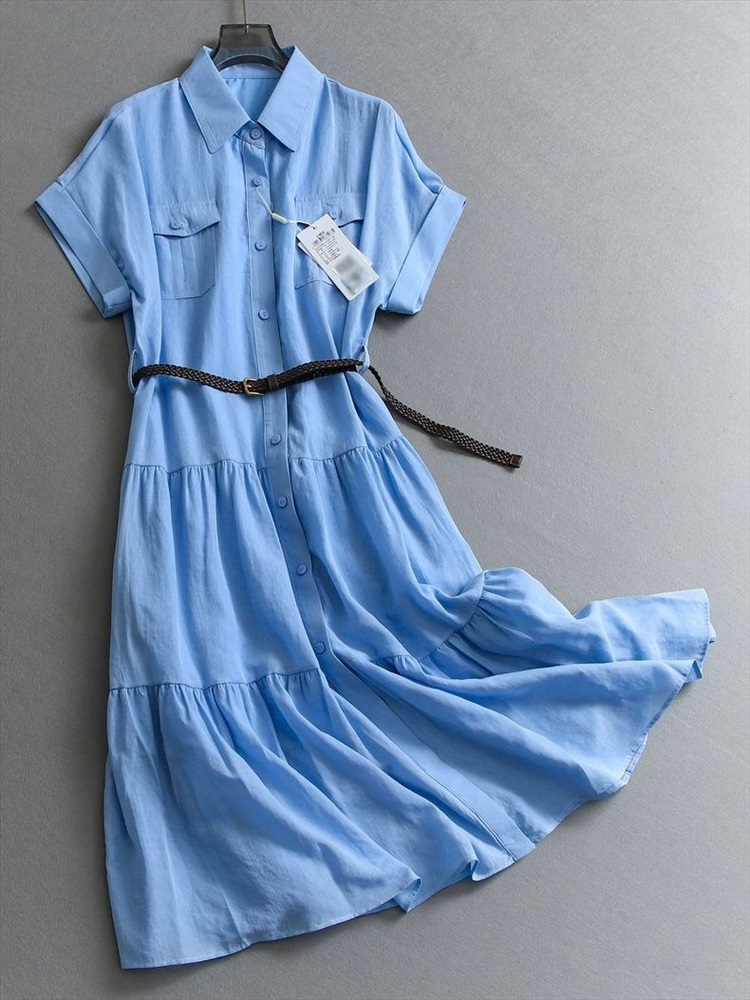 Женское льняное платье рубашка с ремнем 2 цвета