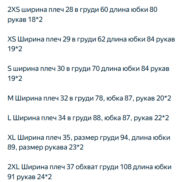 Размер: XXS, XS, S, M, L, XL, 2XL