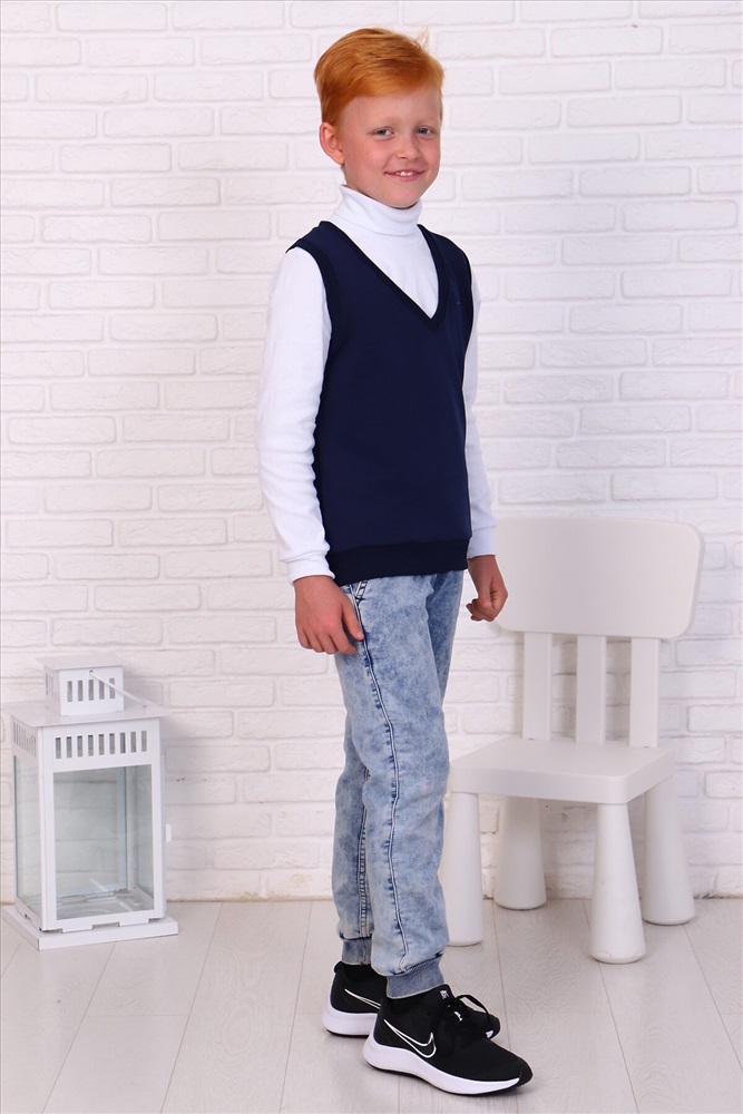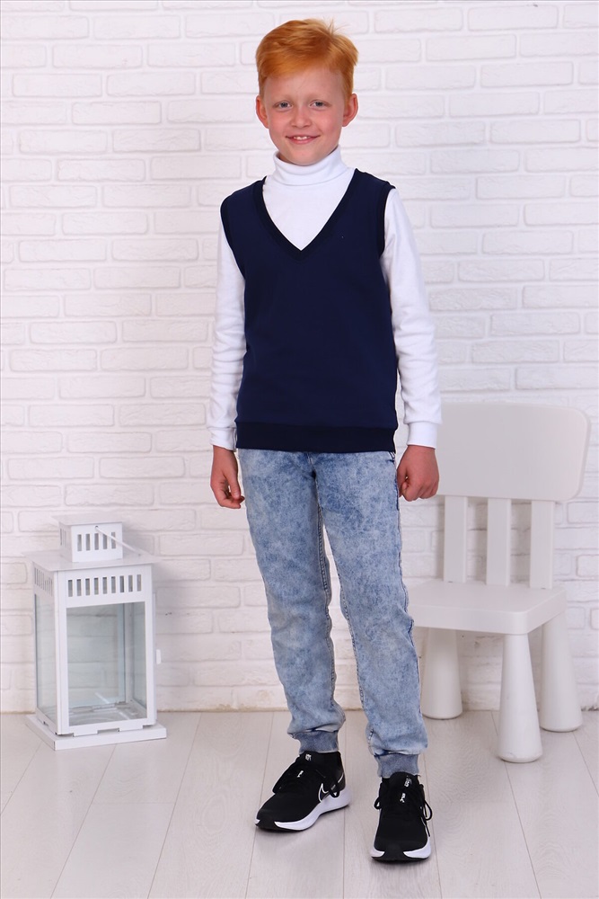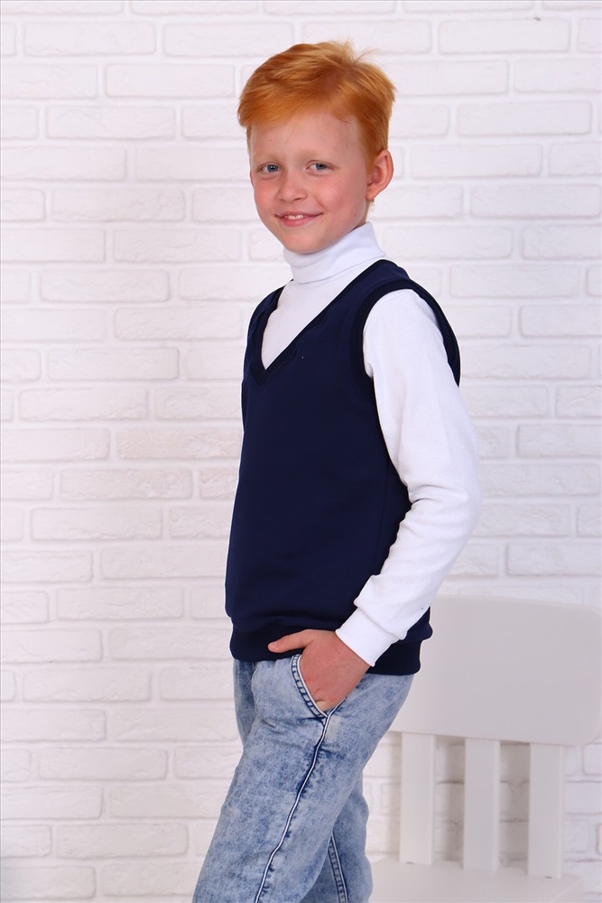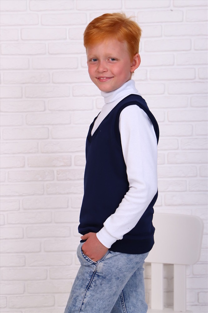 Страна производства: Россия Жилетка для мальчиков, выполненный из мягкого трикотажа на основе хлопка, который дарит комфорт и не сковывает движения, позволяя ребенку быть активным. Модель прямого силуэта, с V-образным вырезом горловины. Горловина, манжеты и пояс оформлены рельефной резинкой. Универсальная вещь, которая подойдет для множества образов, как школьных, так и повседневных в стиле casual. Школьная коллекция