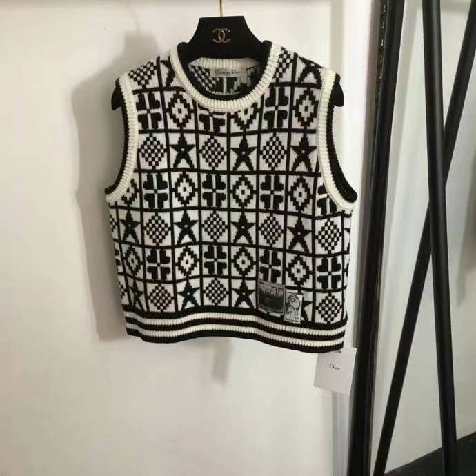 Dio* новый контрастный жаккардовый жилет с пятиконечной звездой из 100% шерсти, черный, 36 38 40, [размер 38; обхват груди 96, длина 49]