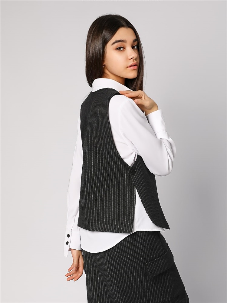 Состав: 73% хлопок, 22% полиэстер, 5% полиуретан Модель: Жилет для девочки SP2513 Тип товара: жилет Материал: трикотаж стрейч | трикотаж стрейч Бренд: Соль&Перец Карман: без карманов Рисунок: полоска Рукав: без рукава Сезонность: осень | весна | зима Силуэт: полуприлегающий | прилегающий Стиль: для школы | повседневный Воротник: без воротника Застежка: пуговицы Классический, однобортный жилет для девочки СольПерец. Жилет с подкладом, выполнен из износостойкой трикотажной ткани которая долго сохраняет форму и привлекательный внешний вид. Жилет прекрасно сочетается с юбками и брюками. Подойдет для посещения школы, официального или праздничного мероприятия. Размер 140 (рост 134-140 см) длина изделия 46 см, обхват груди 68 см. Размер 146 (рост 140-146 см) длина изделия 48 см, обхват груди 70 см. Размер 152 (рост 146-152 см) длина изделия 50 см, обхват груди 72 см. Размер 158 (рост 152-158 см) длина изделия 52 см, обхват груди 74 см. Размер 164 (рост 158-164 см) длина изделия 54 см, обхват груди 76 см. Таблица размеров и веса