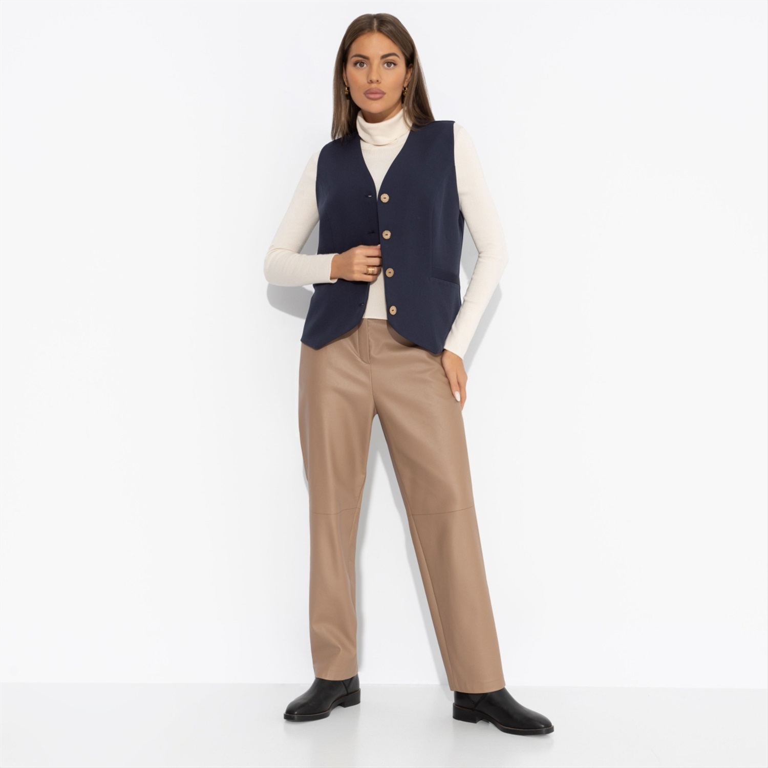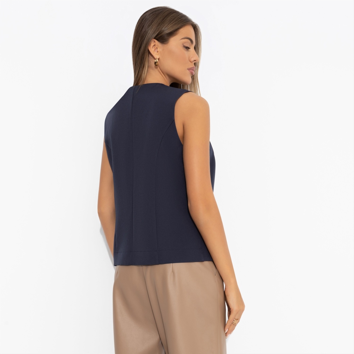 Состав: «Барби» (95% п/э, 5% эластан) Плотность ткани: Средняя Тип ткани: Текстиль Вид застежки: Пуговица/-ы Карманы: Нет Основной цвет ткани: Синий Отрезная талия: Есть Подклад: Нет Резинка по талии: Есть Рисунок/раппорт: Нет, все изделия идентичны Сезон: Круглогодичный Силуэт: Приталенный Стиль: Деловой Параметры модели на фото: