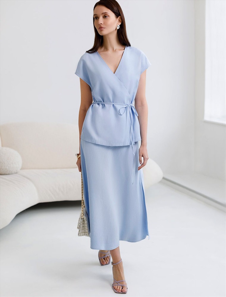 Жилет голубого цвета выполнен из плотного лиоцелла. Лиоцелл это более дорогой и экологичный вариант вискозы, очень прочный и шелковистый. Ткань отличается от регулярной коллекции из лиоцелла - она содержит еще больше лиоцелла (92%), благодаря чему имеет более нежную шелковистую фактуру. Стильный фасон и легкий материал делают эту жилетку идеальным вариантом для весны и лета. Пояс мягко акцентирует талию, красиво облегает силуэт и корректирует пропорции, а V-вырез изящно подчеркивает линию шеи. Жилет можно носить без пояса, создавая расслабленный образ. Спущенная линия плеча позволяет использовать жилет, где требуется деловой дресс-код. Благодаря продуманному крою жилетка сидит идеально на разных фигурах, в том числе и на больших размерах..Такой жилет помогает создать актуальный и функциональный летний гардероб: он превосходно сочетается с разными низами, мгновенно преображая любой аутфит. Комплект из лиоцелла подчеркнет ваш вкус и статус. Это идеальный выбор для особенных моментов. Такой образ будет уместен на торжественных мероприятиях и приемах, выпускных вечерах, семейных праздниках и свадьбах.