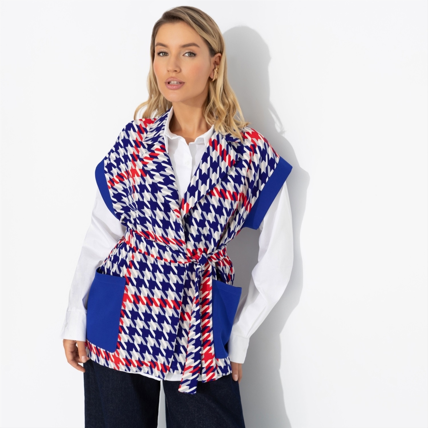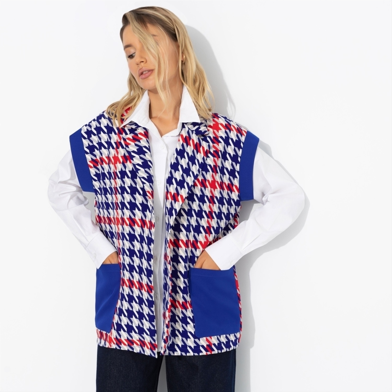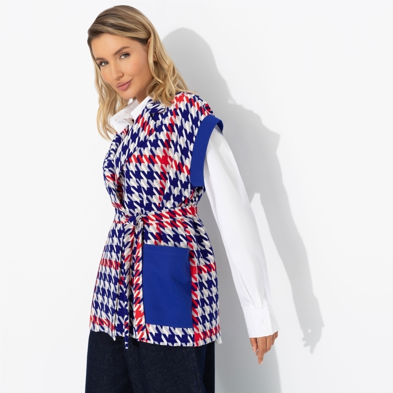 Состав: «Ницца», «барби» (95% п/э, 5% спандекс) Плотность ткани: Средняя Тип ткани: Текстиль Вид застежки: Нет Дополнительный цвет ткани: Синий Карманы: Накладные Основной цвет ткани: Разноцветный Отрезная талия: Нет Подклад: Нет Резинка по талии: Нет Рисунок/раппорт: Каждое изделие уникально из-за расположения рисунка на ткани Сезон: Круглогодичный Силуэт: Прямой Стиль: Повседневный Параметры модели на фото: