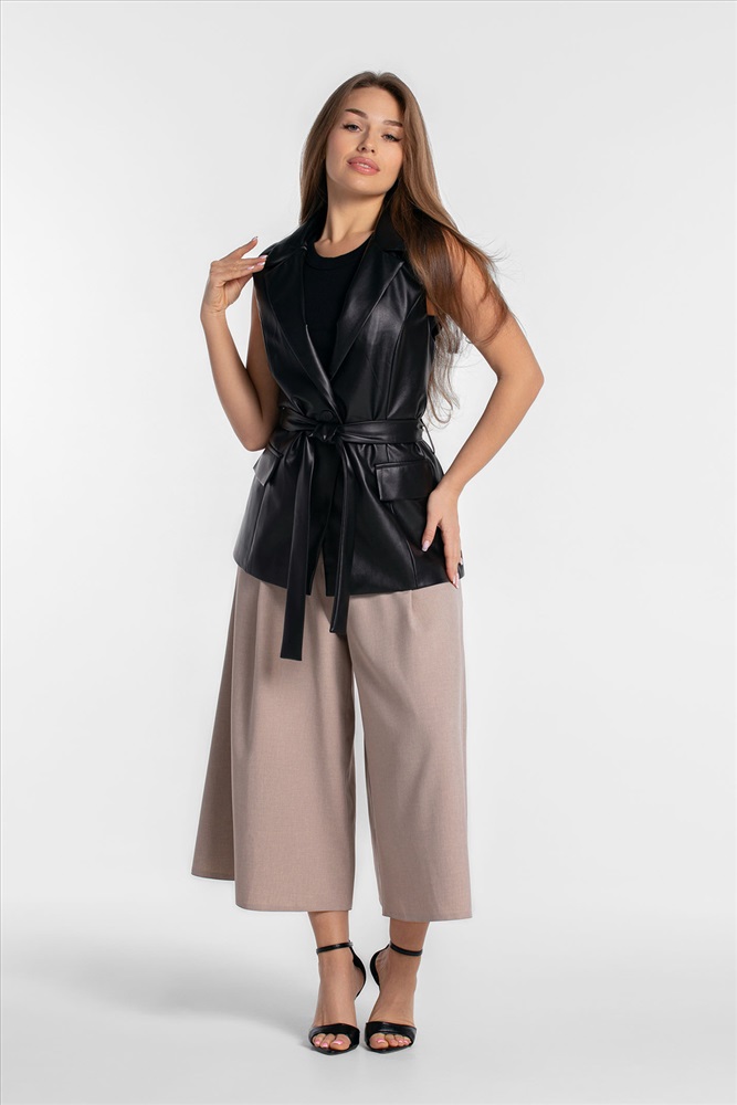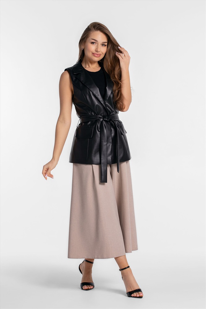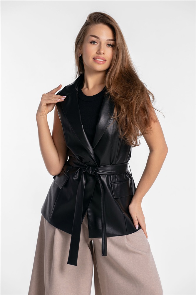Застежка: на запах | пояс Классический жилет универсальная вещь, которая не привязана ни к одному стилю. Его можно носить с любой одеждой, создавая уникальные образы в разных модных направлениях. Костюмный жилет можно носить представительницам прекрасного пола вне зависимости от возраста, фигуры и других особенностей. Жилет декорирован фальш-клапанами.