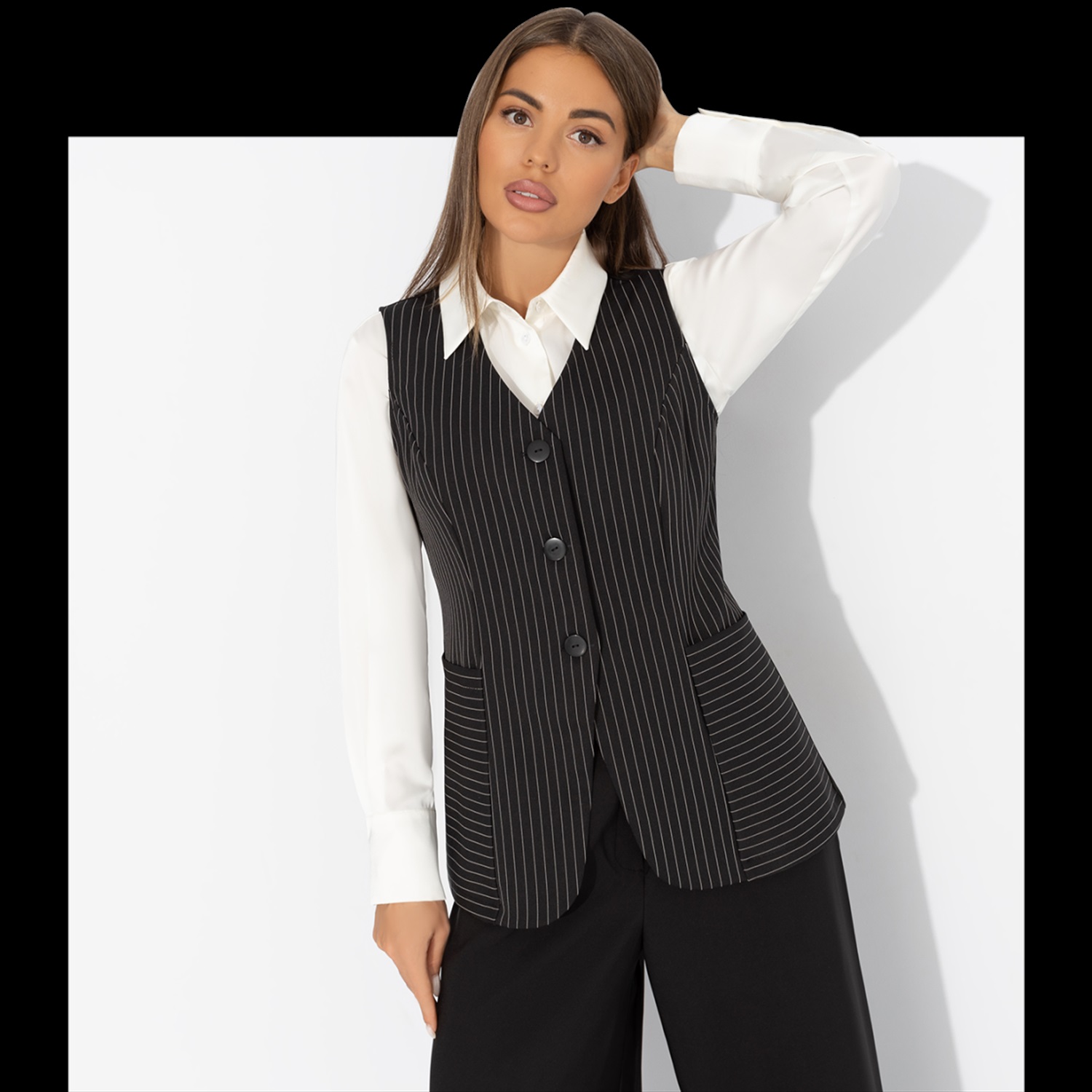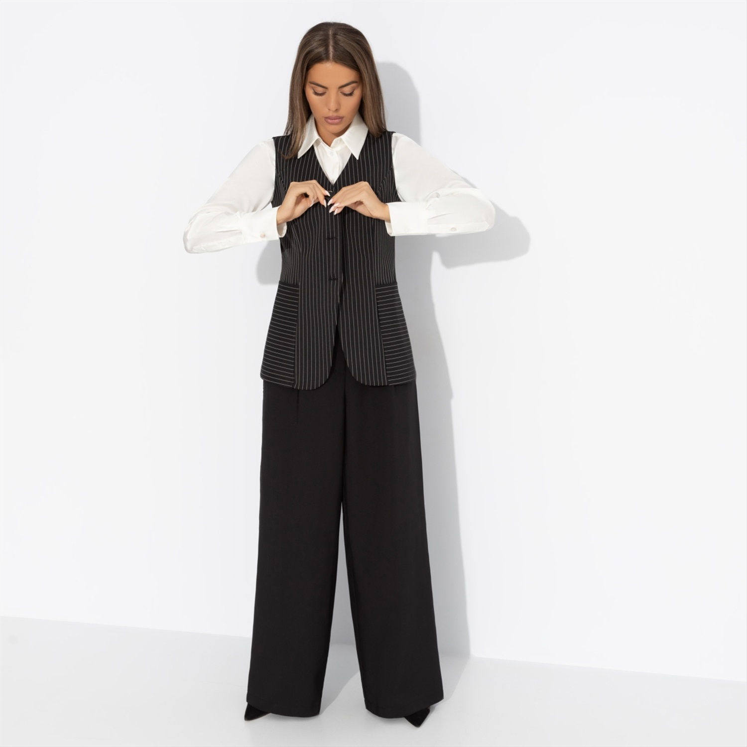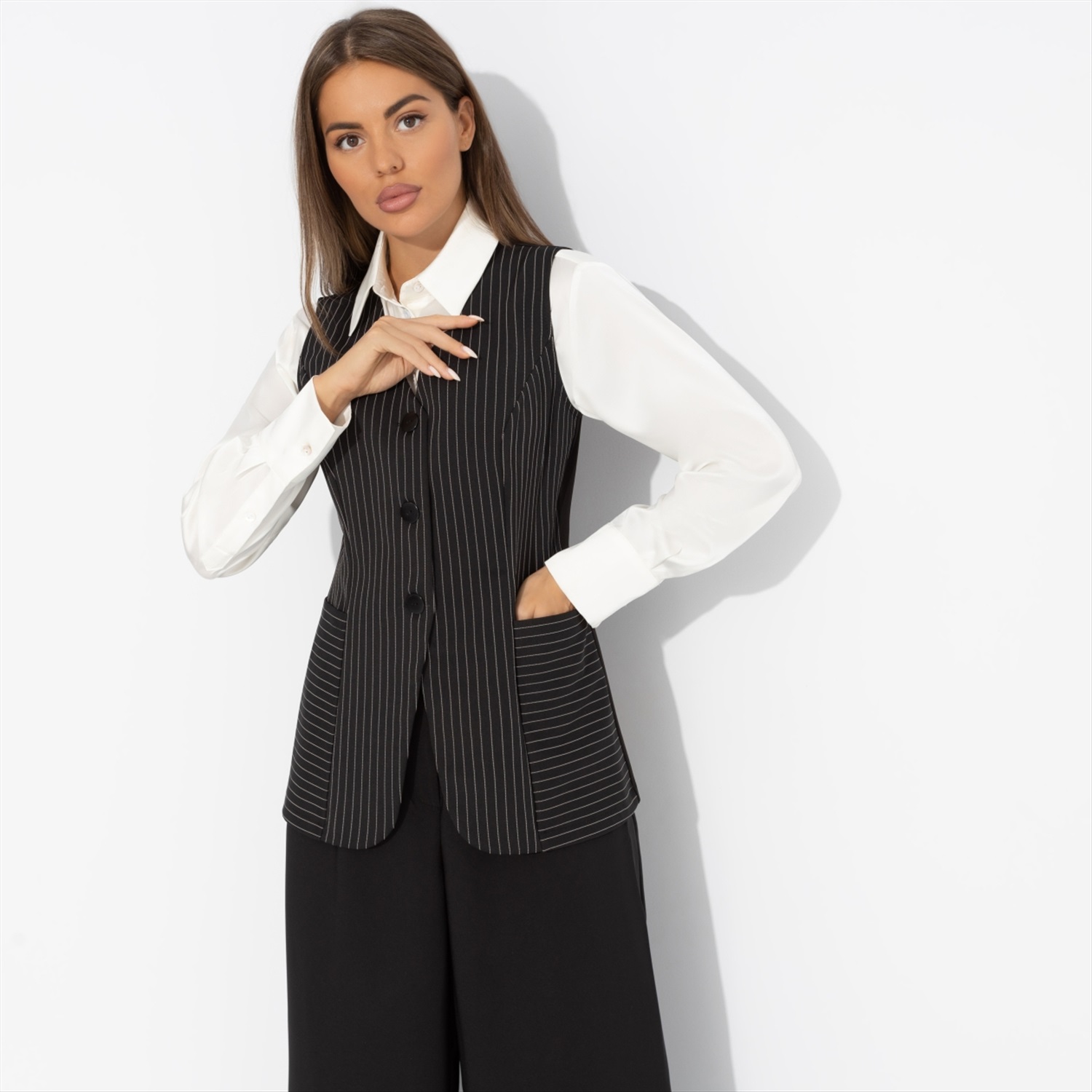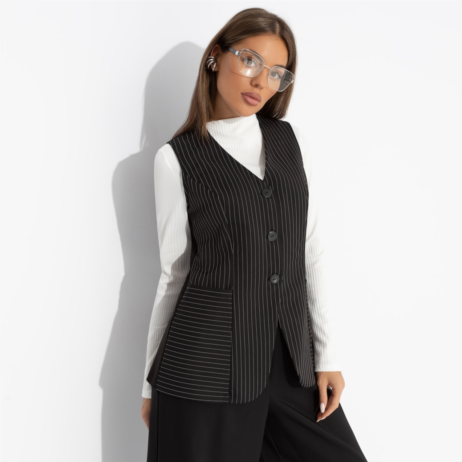Состав: «Барби», «пикачу» (60% полиэстер, 37% вискоза, 3% спандекс) Плотность ткани: Средняя Тип ткани: Текстиль Вид застежки: Пуговица/-ы Карманы: В рельефах Основной цвет ткани: Черный Отрезная талия: Нет Подклад: Нет Резинка по талии: Нет Сезон: Круглогодичный Силуэт: Приталенный Стиль: Деловой Параметры модели на фото: