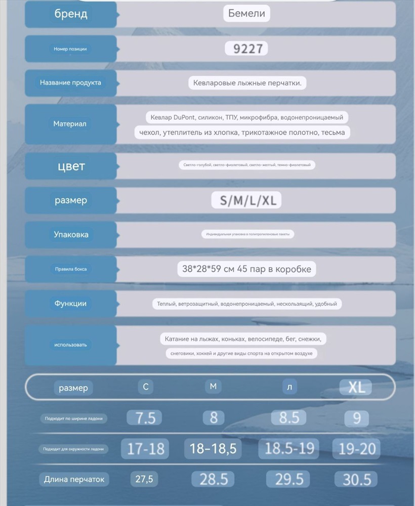 Специальный водонепроницаемый, ветрозащитный материал, утеплитель. Размеры: S M L XL Вес 323гр Комментарии к товару