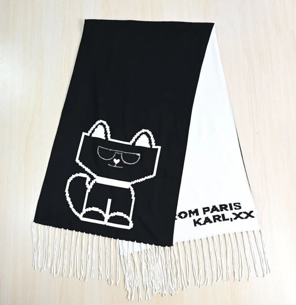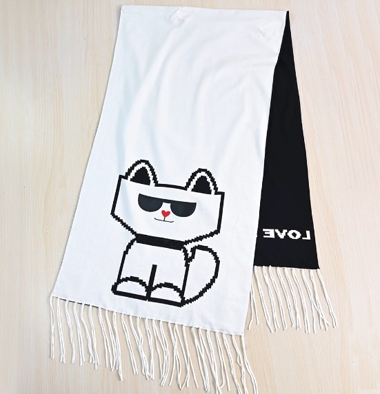 Зимний теплый шарф из окрашенной пряжи с вышитым рисунком мультяшного кота КАР*Л 😎