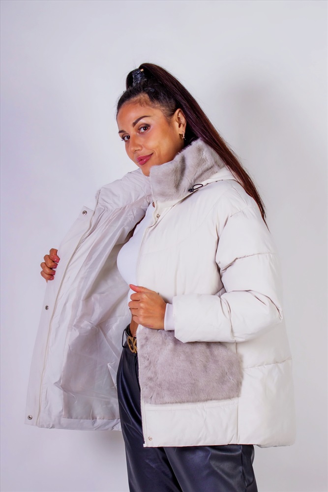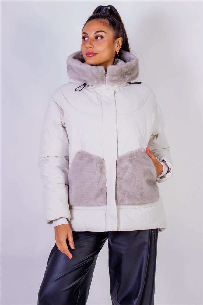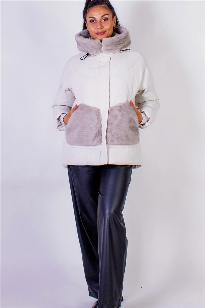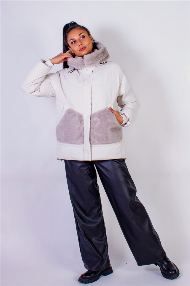 Стильная зимняя куртка с меховой отделкой, которая станет идеальным элементом вашего гардероба в холодное время года. Эта куртка выполнена с использованием качественного искусственного меха, который похож на натуральный, нежный и приятный на ощупь, подарит вам комфорт и тепло.