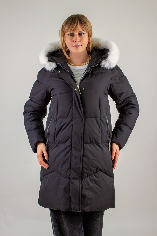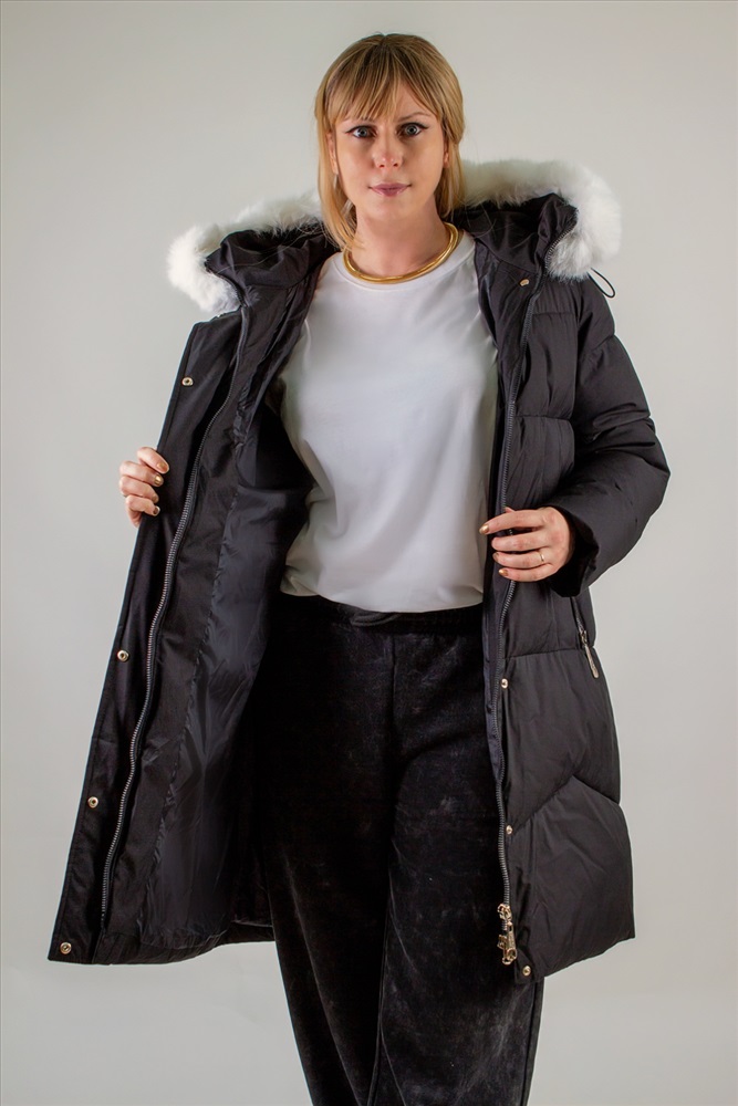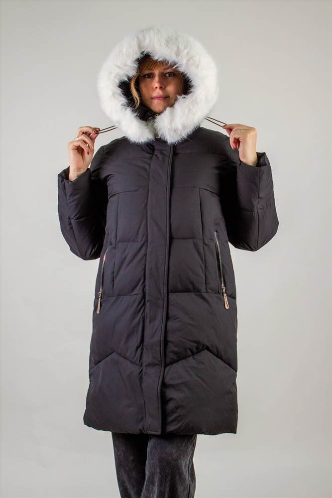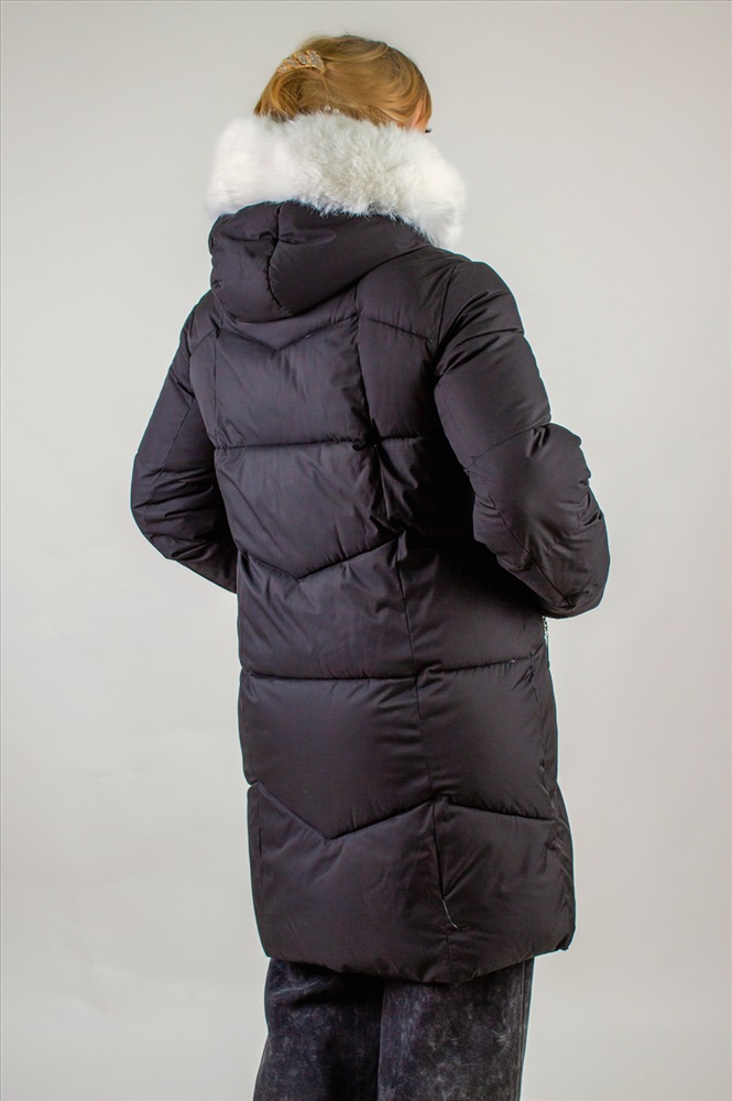 Состав: 100% п/э Модель: Зимняя куртка с меховой опушкой, арт. 28119-1 Тип товара: куртка Материал: наполнитель холлофайбер | курточная стеганая | курточная стеганая | наполнитель холлофайбер Бренд: Styie Evolution Длина: средняя длина Карман: на молнии | прорезные Отделка: с карманами | с мехом Рисунок: однотонные Рукав: длинный рукав Сезонность: осень | весна | зима Силуэт: свободный Скидка: любая | от 10% и больше Стиль: повседневный Воротник: с капюшоном Застежка: кнопка | молния Зимняя удлинённая куртка-пальто арт. 28119-1 идеальный выбор для тех, кто ценит комфорт, функциональность и элегантный внешний вид в холодное время года. Модель удлинена до колен, что обеспечивает дополнительную защиту от ветра и холода, а современный дизайн отлично впишется в любой городской образ. Капюшон с высоким воротником-стойкой на фиксаторах надежно удерживает тепло и защищает от непогоды. По контуру капюшона отстегивающаяся аккуратная опушка из качественного искусственного меха белого цвета стильный и практичный элемент, который можно при желании отстегнуть. Куртка застегивается на двухзамковую молнию, дополненную планкой с кнопками, что гарантирует защиту от продувания и сохраняет тепло внутри. Утеплитель равномерно распределен по всей поверхности изделия благодаря современной стёжке-строчке: такой способ прошивки обеспечивает максимальную теплоизоляцию без комков и неутеплённых участков. Водоотталкивающая матовая ткань в чёрном оттенке защитит вас от снега и легкого дождя, сохраняя привлекательный внешний вид и не промокая. Функциональность модели подчеркнута двумя врезными боковыми карманами на молниях они удобны для хранения мелочей и рук в холодные дни. Трикотажные рукава с манжетами плотно облегают запястье, не пропуская ветер и не создавая дискомфорта при активном движении. Внутренний карман позволит хранить ценные вещи в безопасности и под рукой. Качественный пошив, продуманная конструкция и надежная фурнитура делают эту куртку долговечной и практичной. Удобная посадка по фигуре не стесняет движений, а аккуратная стёжка добавляет изящества и визуально стройнит силуэт. Зимняя куртка-пальто арт. 28119-1 станет вашим надёжным спутником в холодные месяцы, сочетая в себе высокие эксплуатационные характеристики и утончённый стиль. Таблица размеров и веса
