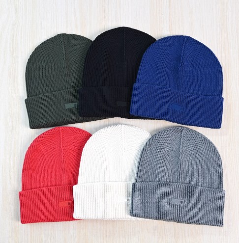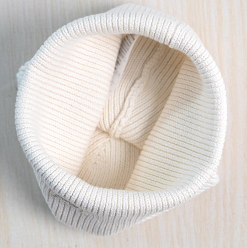 Зимняя теплая хлопковая шапка с вышитыми буквами и объемной вязкой ЛАКОСТ*Е