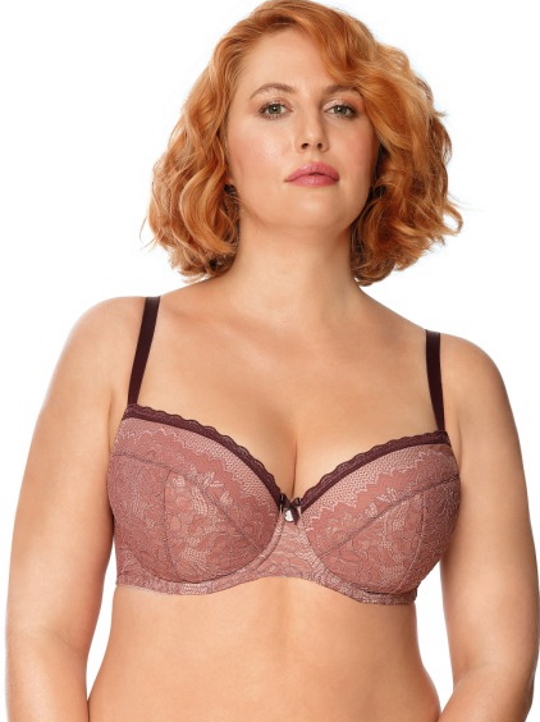 Бюстгальтер Zoe U на косточках, с дополнительными боковыми поддержками, чашки шитые, на тонком поролоне пудрового цвета, со съёмными пуш-ап вкладышами, внутренняя сторона проложена хлопковым трикотажем, внешняя сторона чашек из кружева. Бретельки бордового цвета несъёмные, регулируются по длине. На спине застёжка на удлинитель, количество крючков в ряду застёжки, увеличивается пропорционально размеру бюстгальтера. Бюстгальтер идеально сочетается с трусиками Zoe.