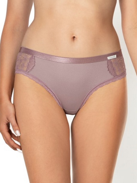 Трусики бразильяна из коллекции Zora из эластичного трикотажа, по бокам вставки из кружева, на спинке V-образная вставка из кружева. Ластовица проложена 100% хлопком. Трусики идеально комплектуются с бюстгальтерами Zora.