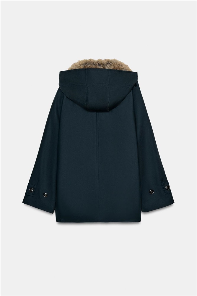 ZARA WOMAN COLLECTION COMPOSITION, CARE & ORIGIN CLAIMS The fabric repels water on contact and helps to prevent you from getting wet when exposed to drizzle during short periods of exposure COMPOSITION OUTER SHELL MAIN FABRIC 68% cotton EMBELLISHMENT 100% polyester LINING 65% polyester FILLING 100% polyester Which contains at least: OUTER SHELL MAIN FABRIC 32% RCS certified recycled polyester 68% RCS certified recycled cotton CERTIFIED MATERIALS RCS CERTIFIED RECYCLED POLYESTER Nowadays, recycled polyester is mainly made from PET plastic waste. This is a type of plastic that is widely used in a variety of items, such as plastic bottles. Using recycled materials helps limit the production of virgin polyester fibre. It is certified to the Recycled Claim Standard (RCS), which verifies the recycled content and tracks it from source to final product. Certified by Intertek 193341 More information RCS CERTIFIED RECYCLED COTTON This fibre is made from recycled cotton textile waste. Using recycled materials helps limit the consumption of raw materials. It is certified to the Recycled Claim Standard (RCS), which verifies the recycled content and tracks it from source to final product. Certified by Intertek 193341 More information CARE Caring for your garments to extend their useful life. Lower temperature washes and delicate spin cycles are gentler on garments and help to protect the colour, shape and structure of the fabric.