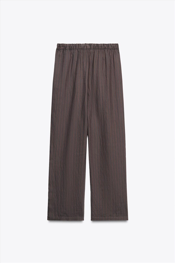 Pyjama-style trousers made from a lyocell blend yarn. Mid-rise with an elasticated drawstring waist. In-seam side pockets. Straight leg.