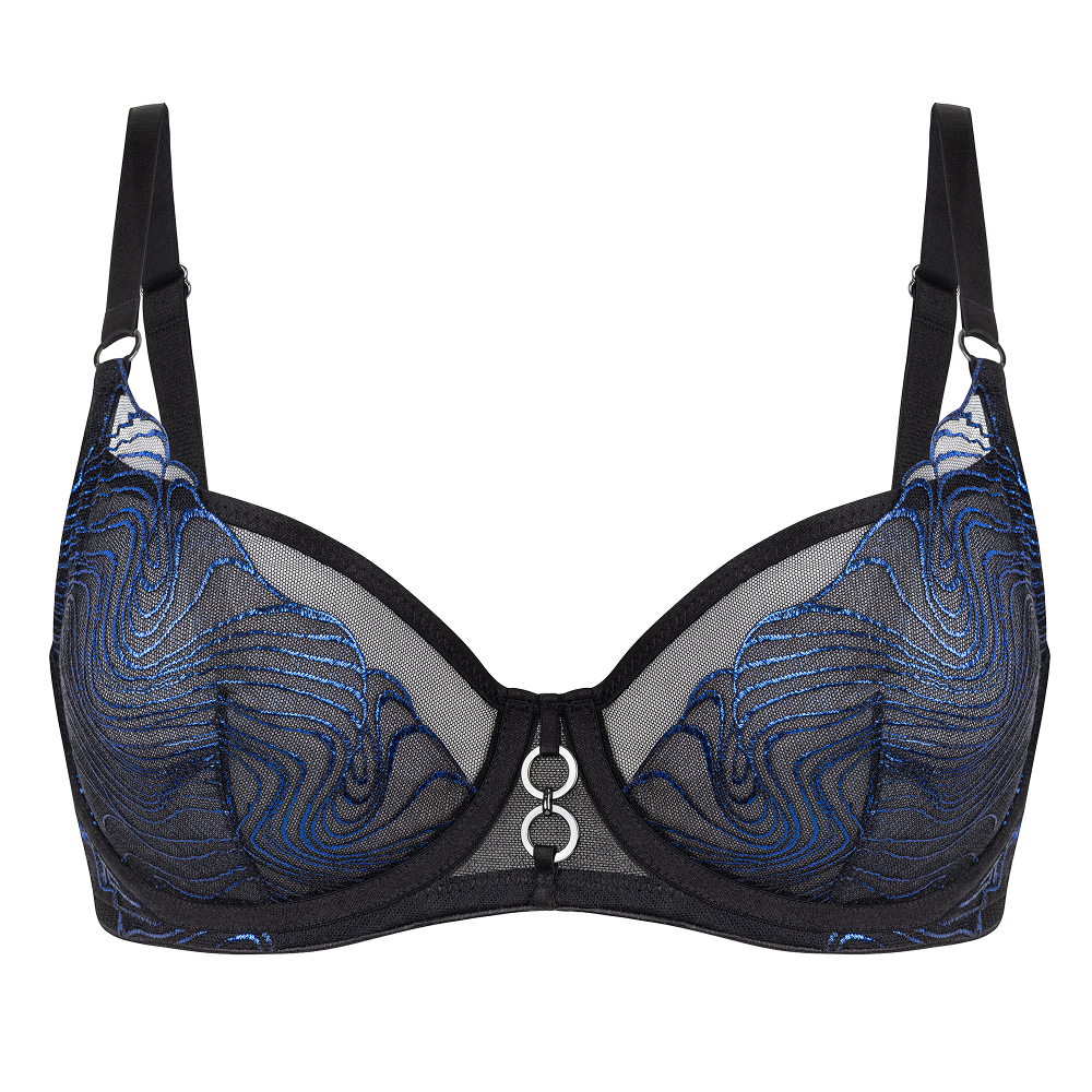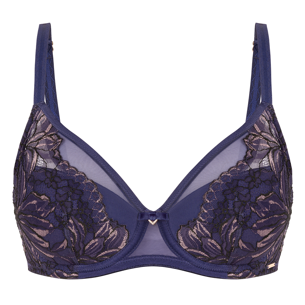 W26-0312-07-DCF-LY Bra, Бюстгальтер с полудублированной поролоновой чашкой на каркасной поддержке. Чашка декорирована эластичным кружевом. Чашка с внутренней стороны выполнена из хлопка. Стан выполнен из эластичной сетки и декорирован кружевом., синий, 85% полиамид, 15% эластан